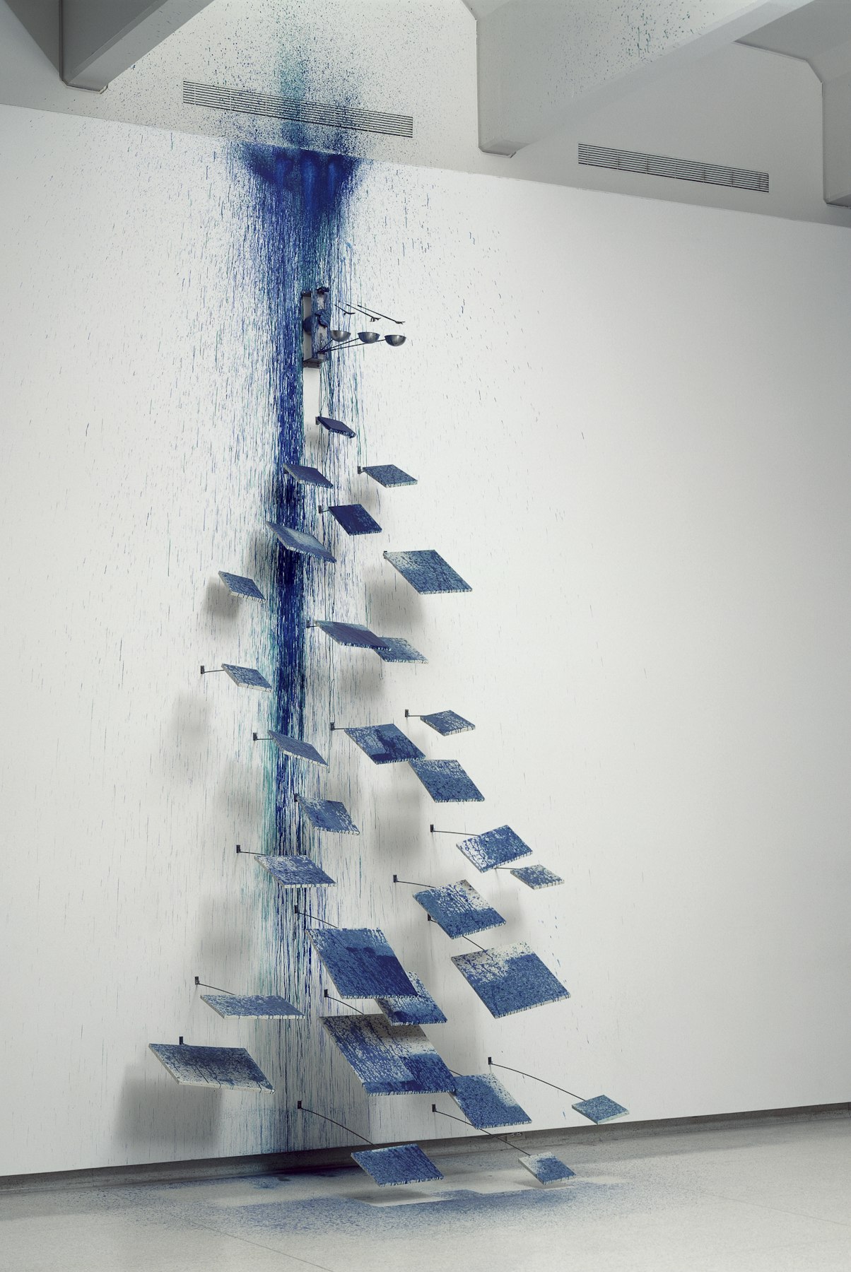 - metal rods, aluminum, sable brushes, electric motor, acrylic on canvas