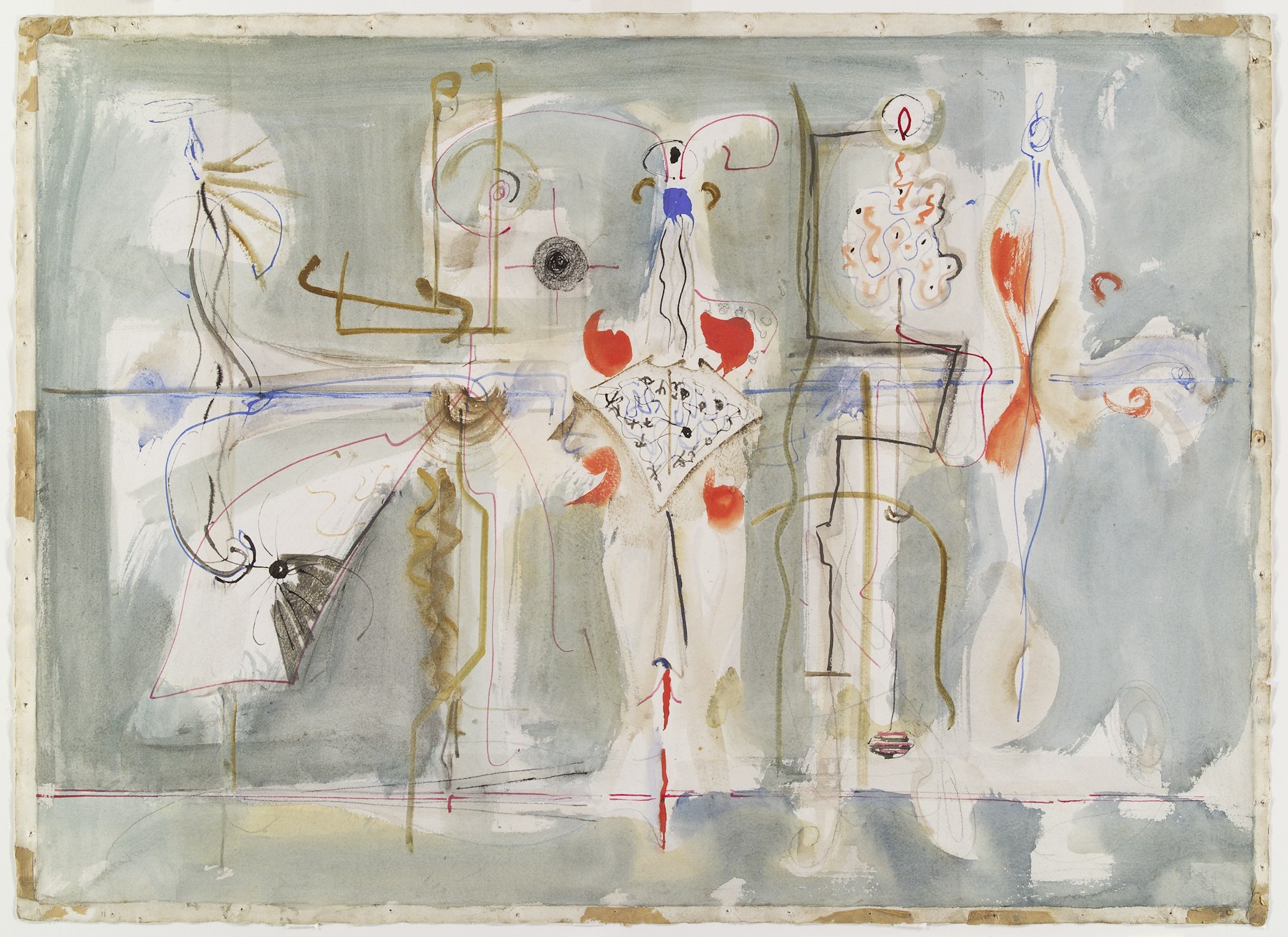 - watercolor, tempera, ink, graphite on paper