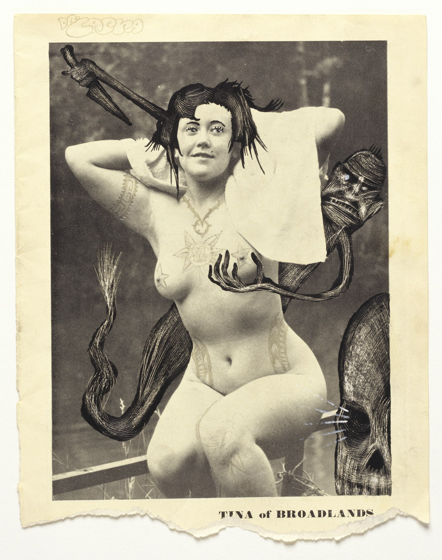 - graphite, ink on vintage magazine print