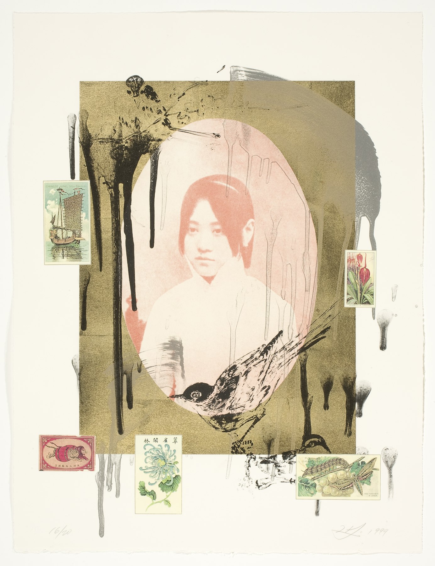 lithograph, gold aluminum leaf, collage on paper
