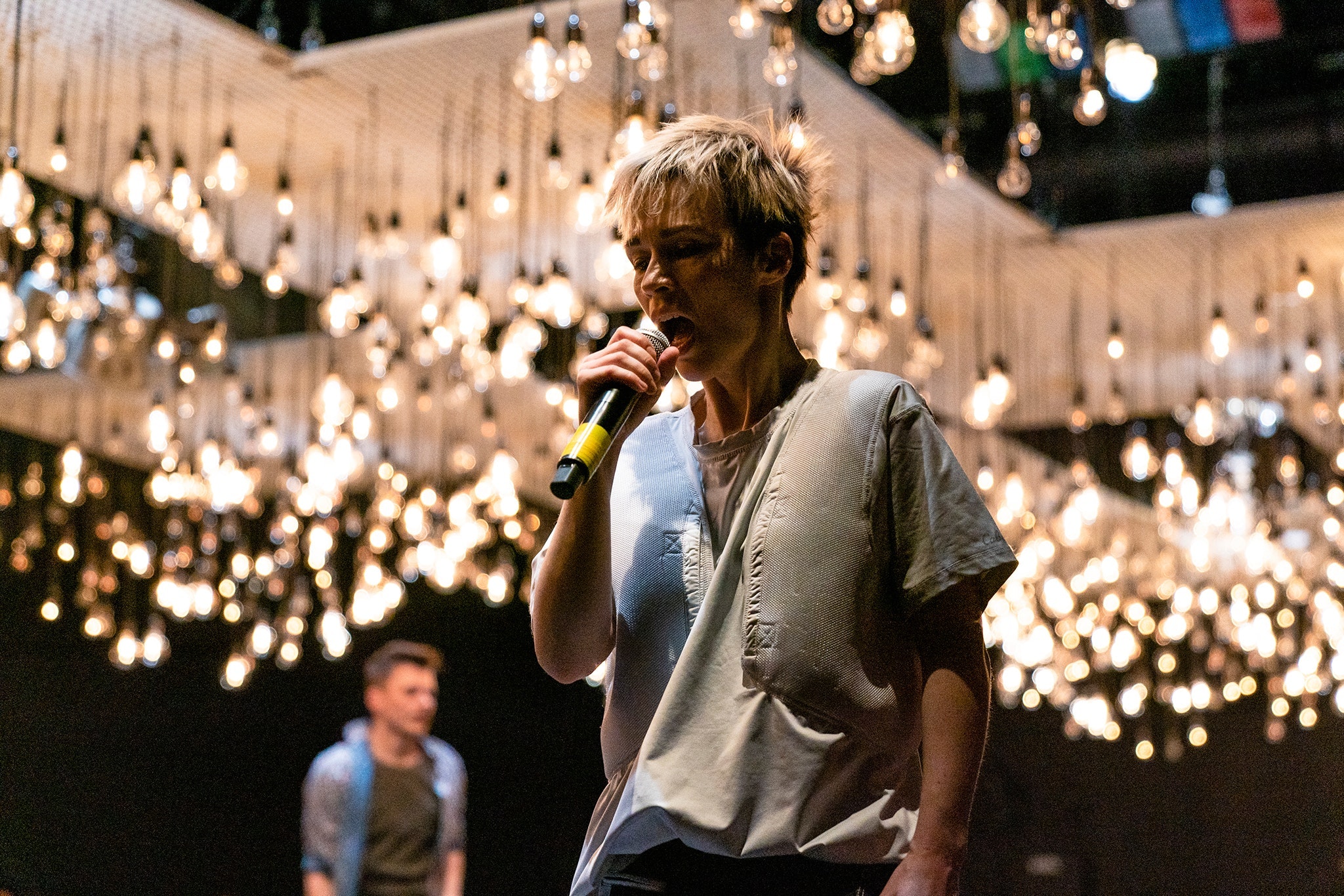 One of dance’s most distinctive experimental voices, choreographer/director Faye Driscoll (US, b. 1975) completes her Walker-commissioned trilogy Thank You For Coming with a powerful new project that bridges gallery and stage. Driscoll’s work poses performance as one of the last secular social spaces, where the vulnerability, necessity, and complexity of our interconnection can be made palpable. Her projects employ heightened modes of performativity, reformulations of proximity, and at times direct physical connection to reveal what she describes as “the palindromic loop between self and other.” Sets are designed to break apart; musical scores are made from the performers’ stomps and voices; props are worn, used, and reused.