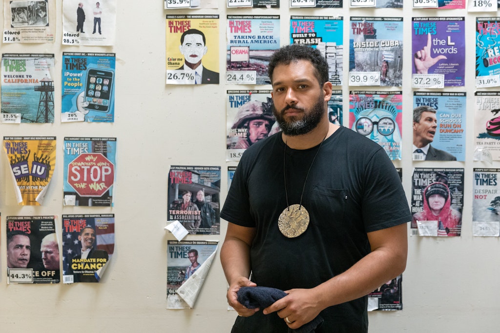 Makaya McCraven in the In These Times offices, September 15, 2019. Photo: David Schalliol/Scrappers Film Group
