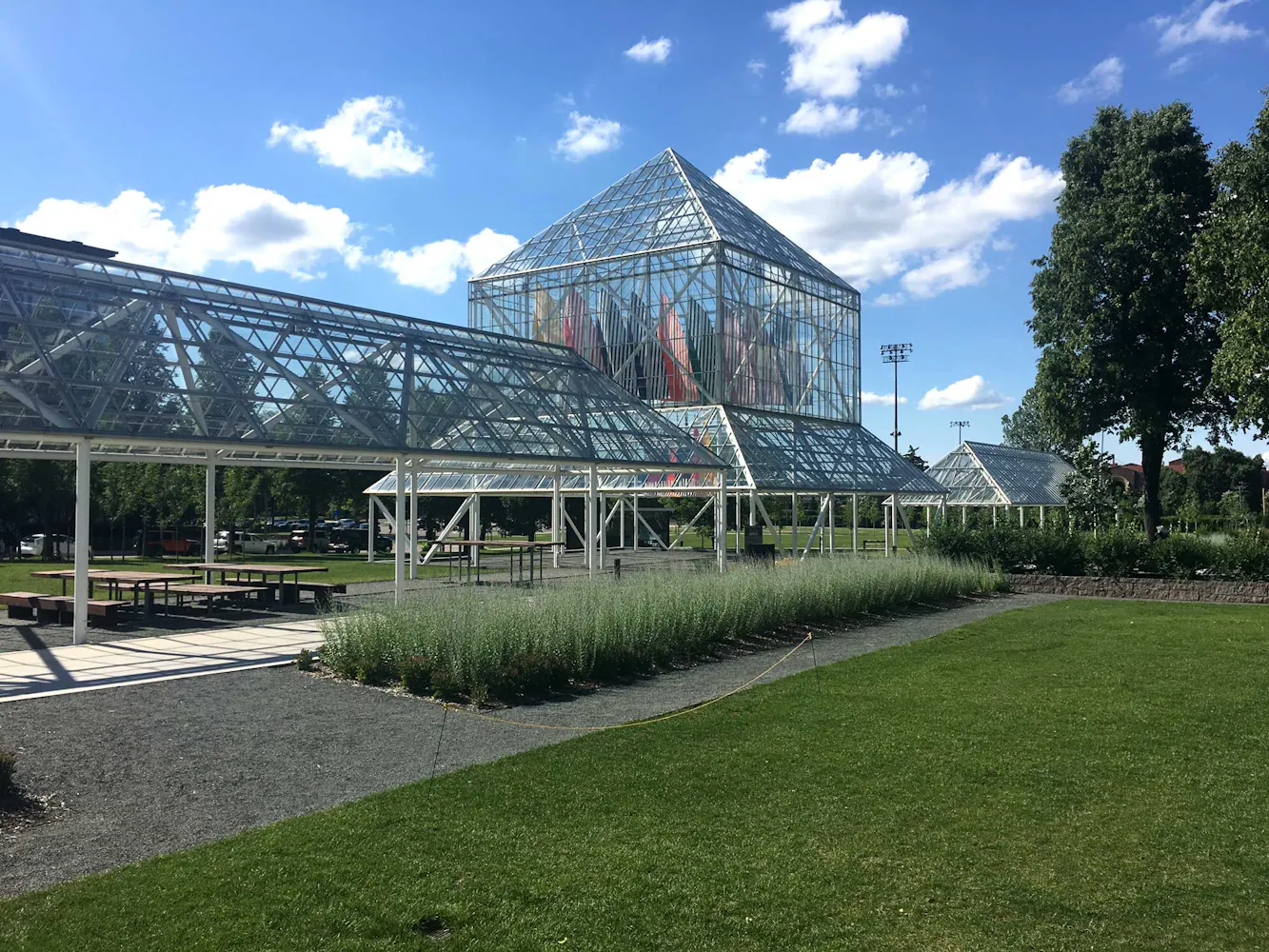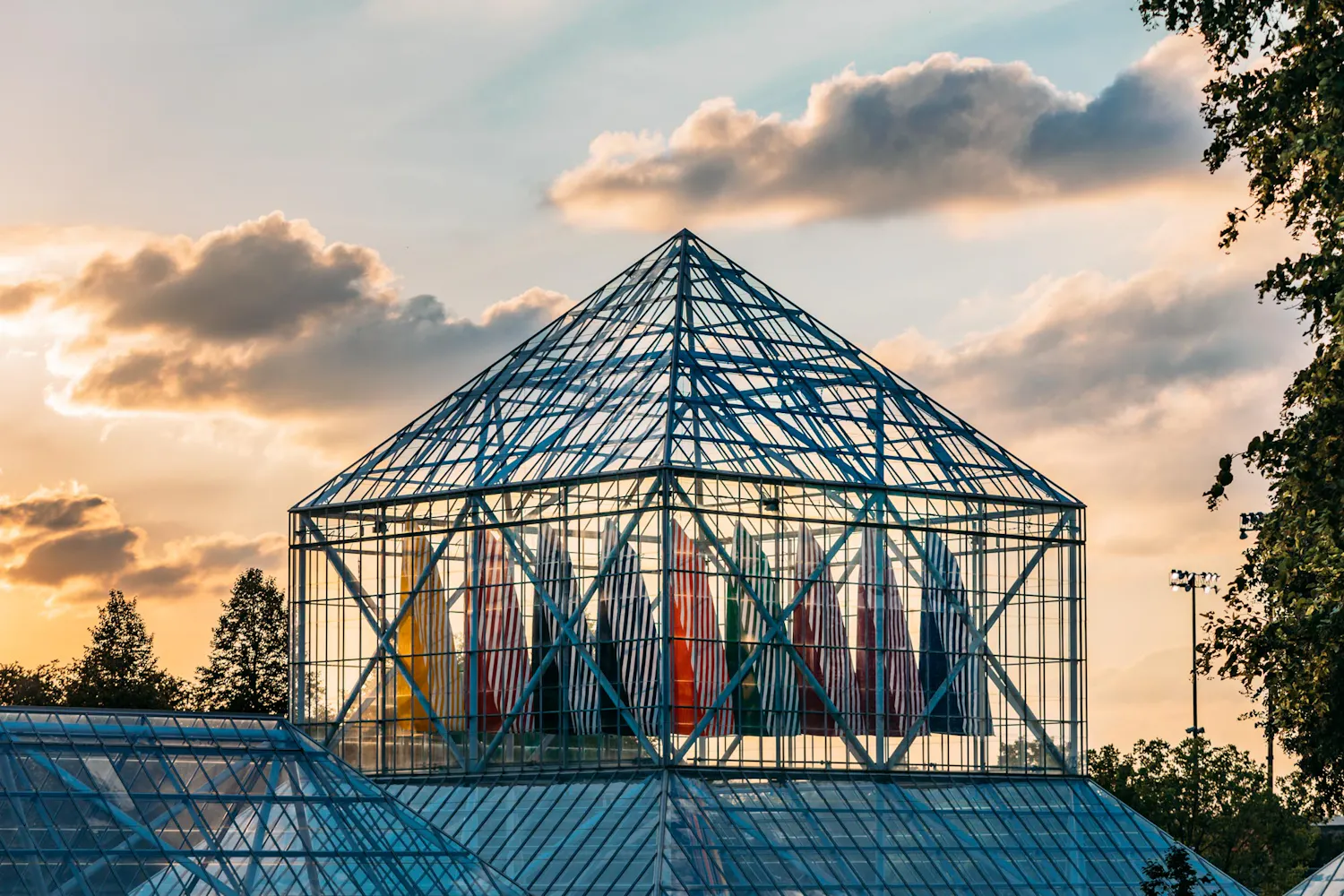 The paintings then came to the Cowles Pavilion in the Minneapolis Sculpture Garden. They fly in the order the boats arrived in the race—first to last place, from left to right.