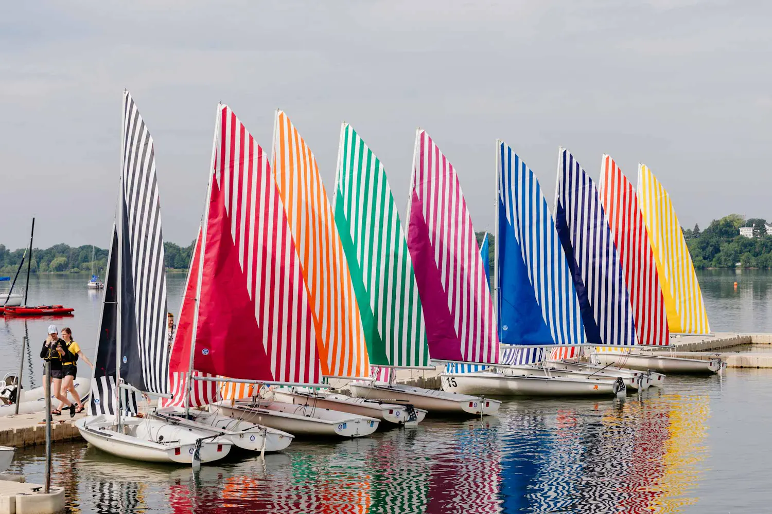 In June 2018, artist Daniel Buren’s paintings set sail on Bde Maka Ska in Minneapolis, Minnesota.