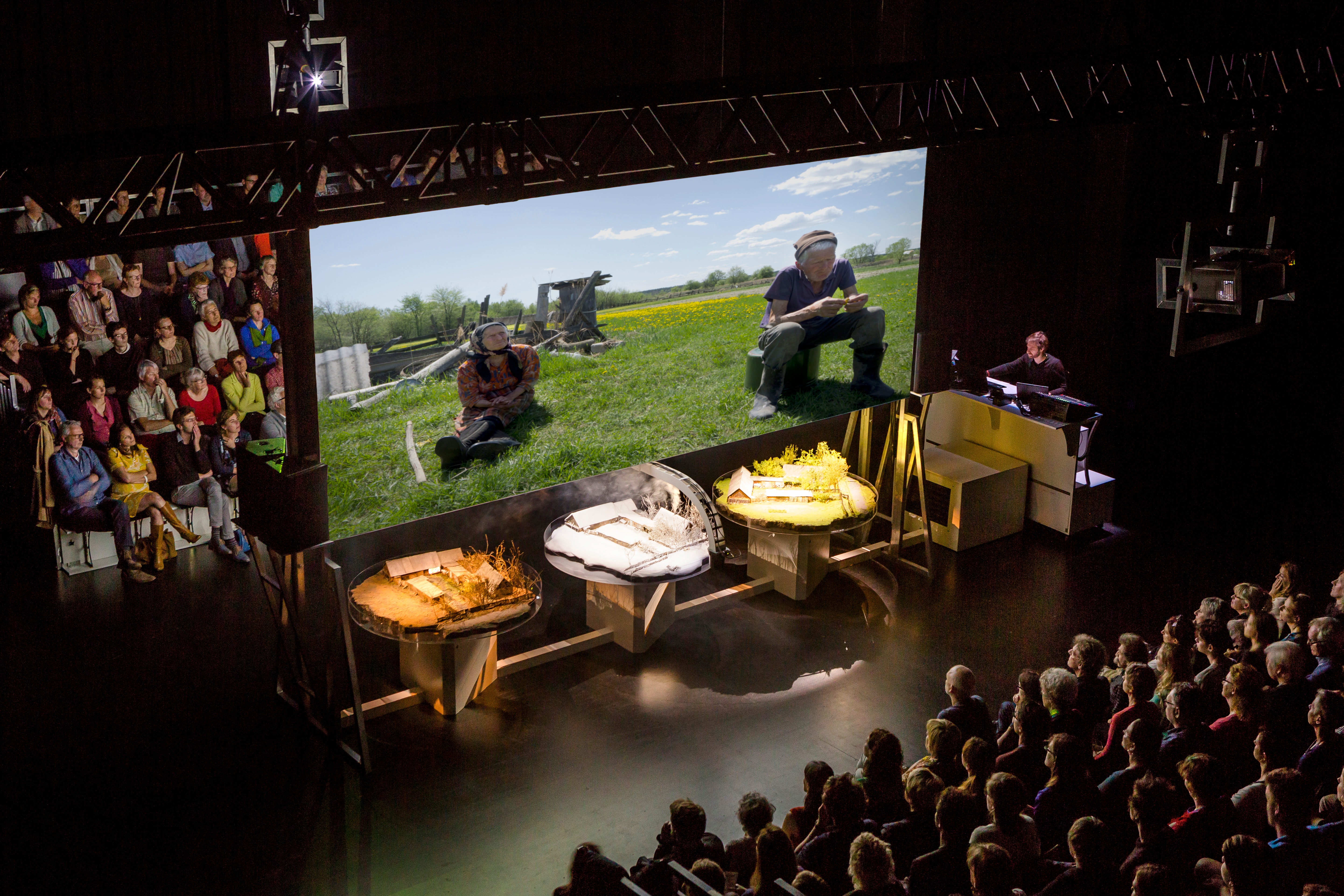 What does it mean for us to bear witness to Nadia and Pétro, waiting with them, sitting in the theater? We are external observers, viewing the exquisite models of Nadia and Pétro’s seasonal terrain. Warm in our seat, witnessing discomfort, how might we take action beyond the performance? As time passes, seasons pass, life passes—but the radioactive pollution stays. It is said that the area by Chernobyl won’t be safe for human habitation for at least 20,000 years. Modern economies are built on the need for large volumes of energy—largely fossil fuels and nuclear. So, who (or what) will, ultimately, be left bearing witness, and to whom?